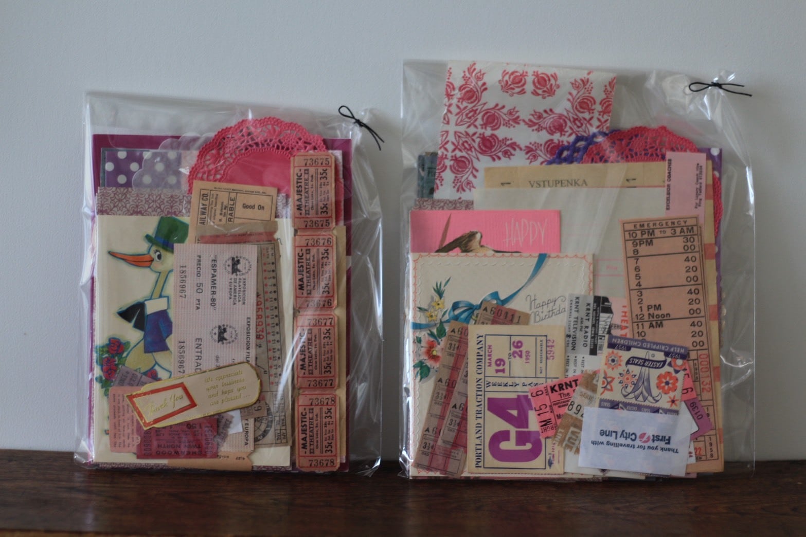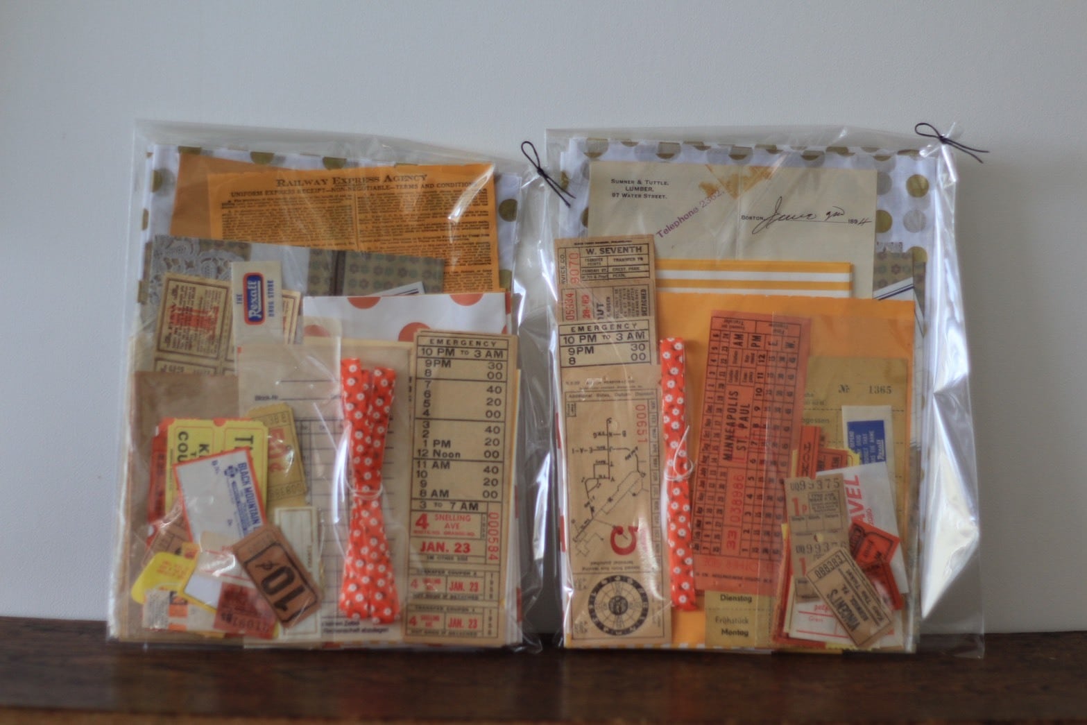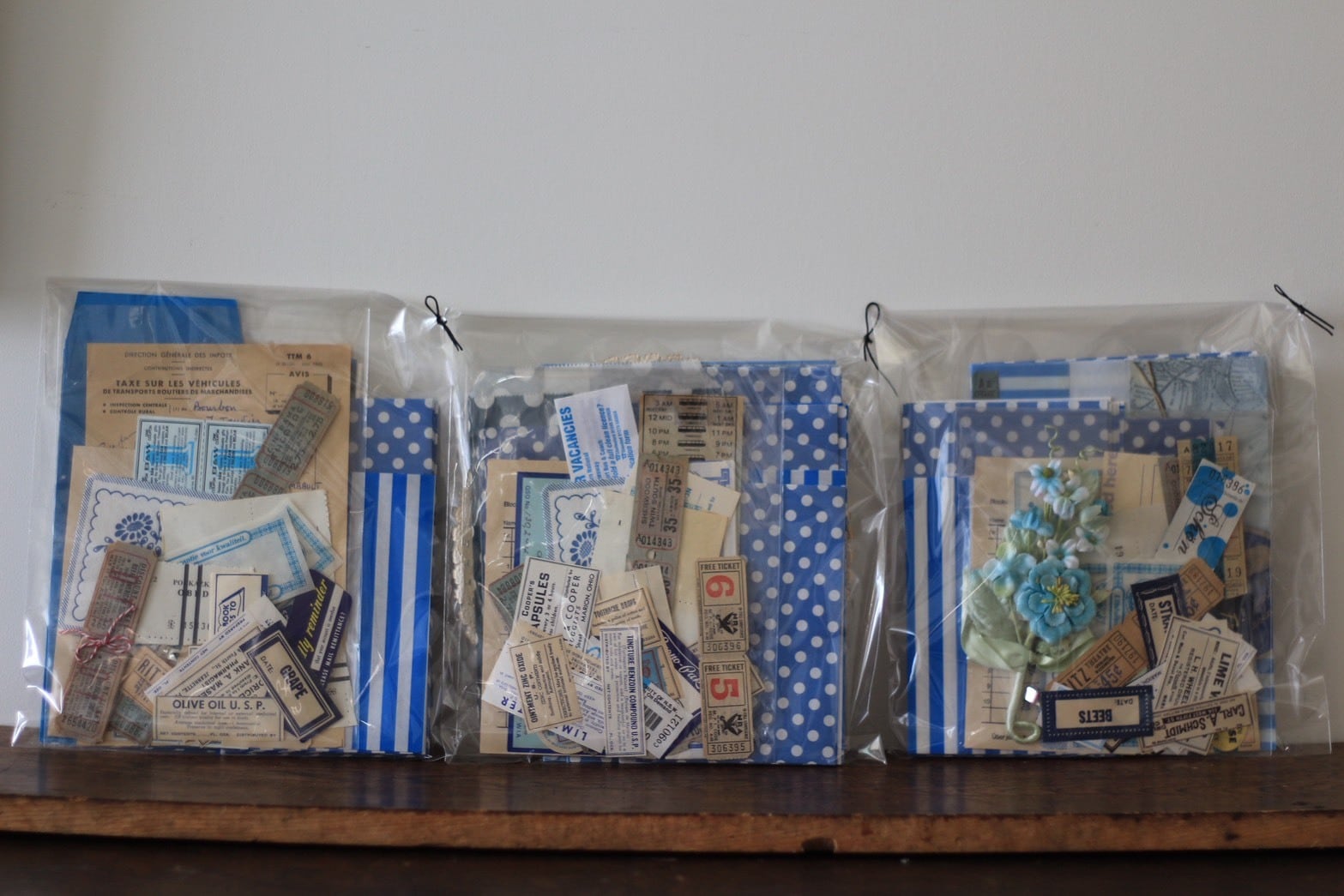 ご覧の通りラッピングやコラージュに使えそうな紙ものばかりが詰まっていて見ているだけでわくわくしますね。